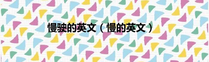 导读 大家好,今天小六子来为大家解答以下的问题,关于慢驶的英文,慢的英文这个很多人还不知道,现在让我们一起来看看吧!1、Slow 形容词Sl