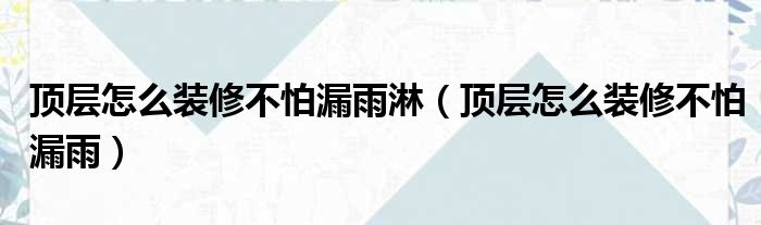 顶层怎么装修不怕漏雨淋(顶层怎么装修不怕漏雨)