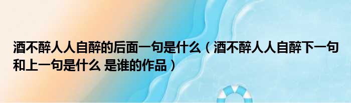 酒不醉人人自醉的后面一句是什么(酒不醉人人自醉下一句和上一句是什么 是谁的作品)