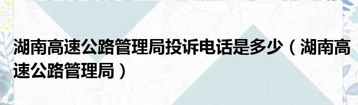 湖南高速公路管理局投诉电话是多少(湖南高速公路管理局)