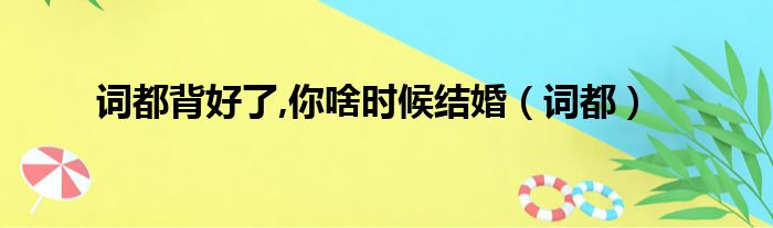 大家好,今天小六子来为大家解答以下的问题,关于词都背好了,你啥时候结婚,词都这个很多人还不知道,现在让我们一起来看看吧!