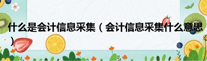 导读 大家好,今天小六子来为大家解答以下的问题,关于什么是会计信息采集,会计信息采集什么意思这个很多人还不知道,现在让我们一起来看看吧!1