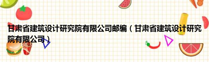 甘肃省建筑设计研究院有限公司邮编(甘肃省建筑设计研究院有限公司)