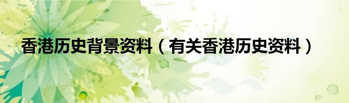 大家好,今天小六子来为大家解答以下的问题,关于香港历史背景资料,有关香港历史资料这个很多人还不知道,现在让我们一起来看看吧!