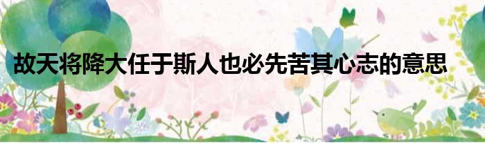 大家好,今天小六子来为大家解答以下的问题,关于故天将降大任于斯人也必先苦其心志的意思这个很多人还不知道,现在让我们一起来看看吧!