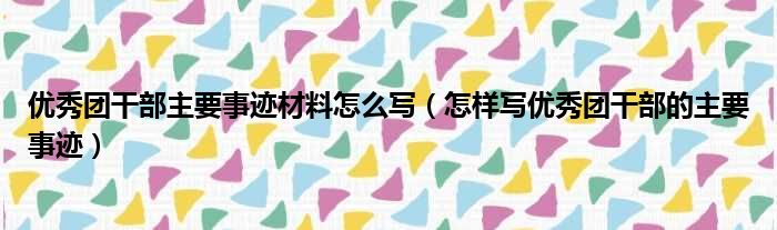 优秀团干部主要事迹材料怎么写(怎样写优秀团干部的主要事迹)