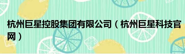 导读 大家好,今天小六子来为大家解答以下的问题,关于杭州巨星控股集团有限公司,杭州巨星科技官网这个很多人还不知道,现在让我们一起来看看吧