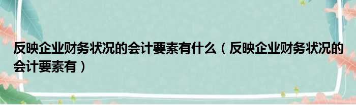 反映企业财务状况的会计要素有什么(反映企业财务状况的会计要素有)
