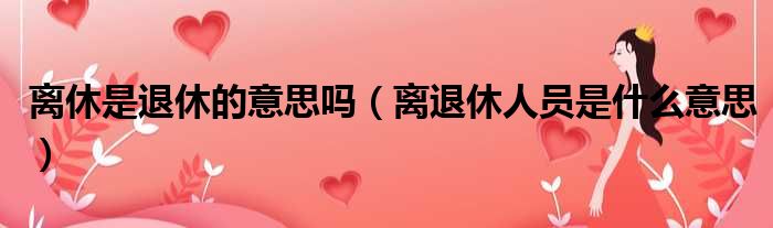 导读 大家好,今天小六子来为大家解答以下的问题,关于离休是退休的意思吗,离退休人员是什么意思这个很多人还不知道,现在让我们一起来看看吧!1