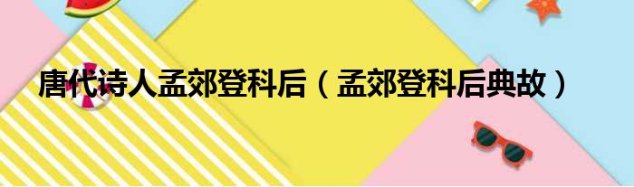 大家好,今天小六子来为大家解答以下的问题,关于唐代诗人孟郊登科后,孟郊登科后典故这个很多人还不知道,现在让我们一起来看看吧!