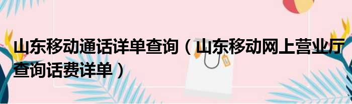 导读 大家好,今天小六子来为大家解答以下的问题,关于山东移动通话详单查询,山东移动网上营业厅查询话费详单这个很多人还不知道,现在让我们一