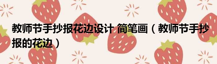 导读 大家好,今天小六子来为大家解答以下的问题,关于教师节手抄报花边设计 简笔画,教师节手抄报的花边这个很多人还不知道,现在让我们一起来