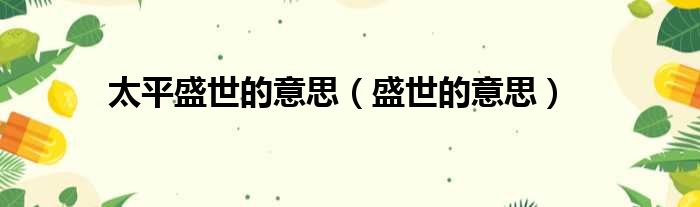 太平盛世的意思(盛世的意思)