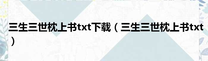 三生三世枕上书txt下载(三生三世枕上书txt)