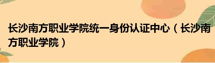长沙南方职业学院统一身份认证中心(长沙南方职业学院)