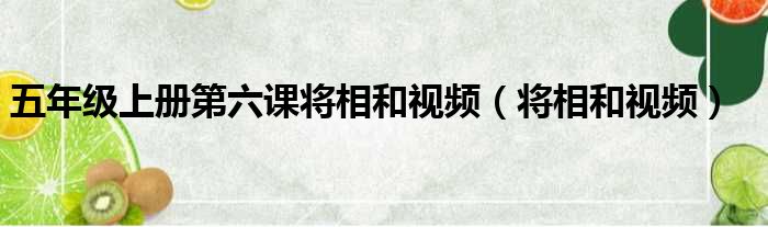大家好,今天小六子来为大家解答以下的问题,关于五年级上册第六课将相和视频,将相和视频这个很多人还不知道,现在让我们一起来看看吧!