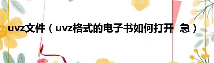 导读 大家好,今天小六子来为大家解答以下的问题,关于uvz文件,uvz格式的电子书如何打开 急这个很多人还不知道,现在让我们一起来看看吧!1、