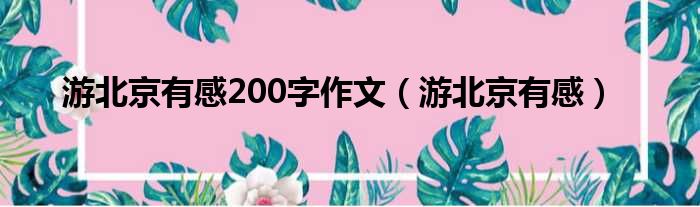 大家好,今天小六子来为大家解答以下的问题,关于游北京有感200字作文,游北京有感这个很多人还不知道,现在让我们一起来看看吧!