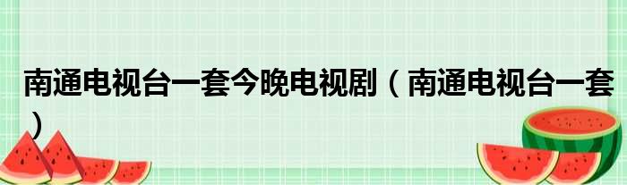导读 大家好,今天小六子来为大家解答以下的问题,关于南通电视台一套今晚电视剧,南通电视台一套这个很多人还不知道,现在让我们一起来看看吧!1