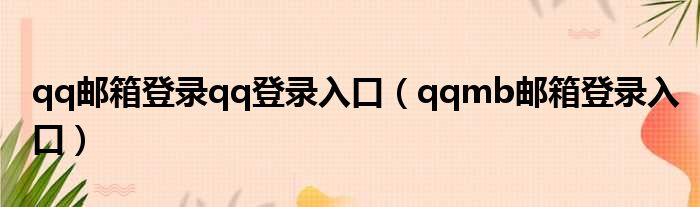 qq邮箱登录qq登录入口(qqmb邮箱登录入口)