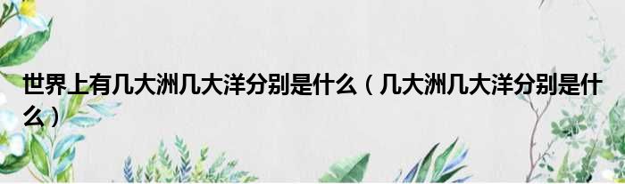 导读 大家好,今天小六子来为大家解答以下的问题,关于世界上有几大洲几大洋分别是什么,几大洲几大洋分别是什么这个很多人还不知道,现在让我们