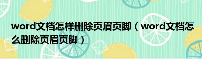 word文档怎样删除页眉页脚(word文档怎么删除页眉页脚)