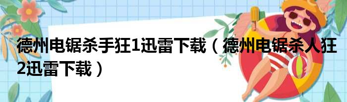 导读 大家好,今天小六子来为大家解答以下的问题,关于德州电锯杀手狂1迅雷下载,德州电锯杀人狂2迅雷下载这个很多人还不知道,现在让我们一起来