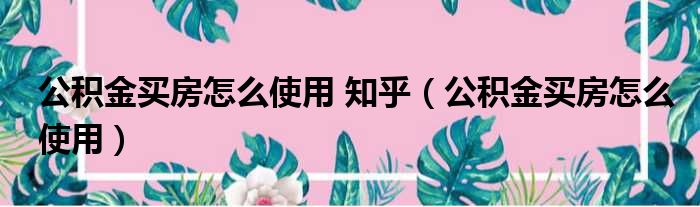 公积金买房怎么使用 知乎(公积金买房怎么使用)