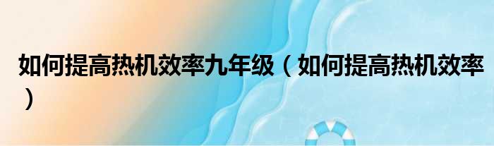 如何提高热机效率九年级(如何提高热机效率)