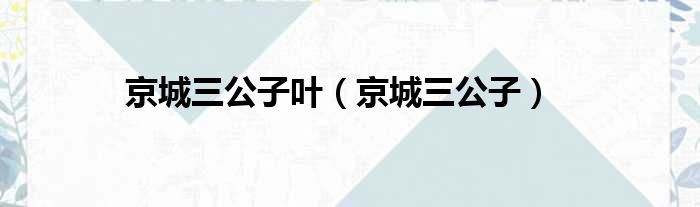大家好,今天小六子来为大家解答以下的问题,关于京城三公子叶,京城三公子这个很多人还不知道,现在让我们一起来看看吧!