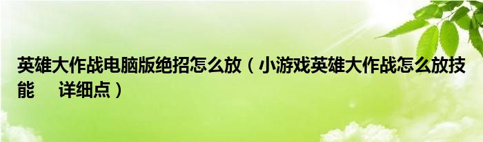英雄大作战电脑版绝招怎么放(小游戏英雄大作战怎么放技能 详细点)