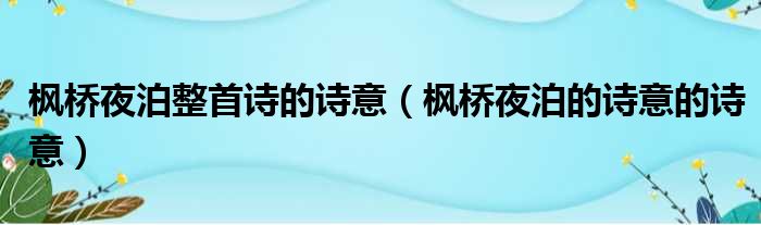 枫桥夜泊整首诗的诗意(枫桥夜泊的诗意的诗意)