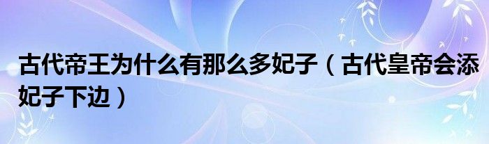 古代帝王为什么有那么多妃子(古代皇帝会添妃子下边)