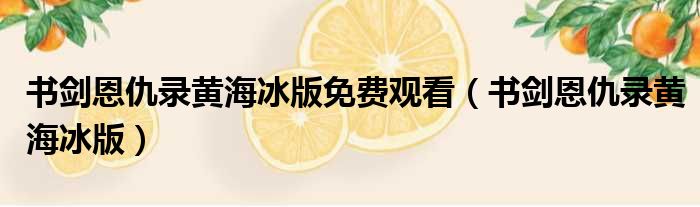 书剑恩仇录黄海冰版免费观看(书剑恩仇录黄海冰版)