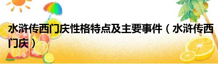 水浒传西门庆性格特点及主要事件(水浒传西门庆)