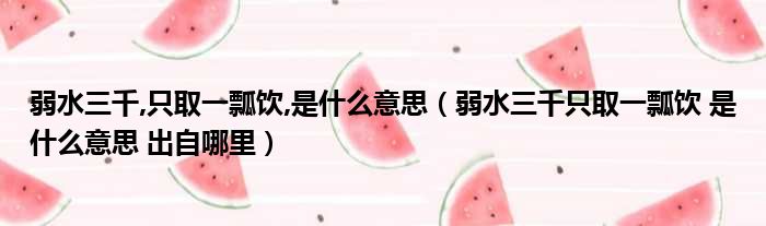 大家好,今天小六子来为大家解答以下的问题,关于弱水三千,只取一瓢饮,是什么意思,弱水三千只取一瓢饮 是什么意思 出自哪里这个很多人还不知道,现在让我们一起来看看吧!