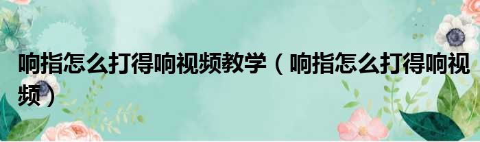 响指怎么打得响视频教学(响指怎么打得响视频)