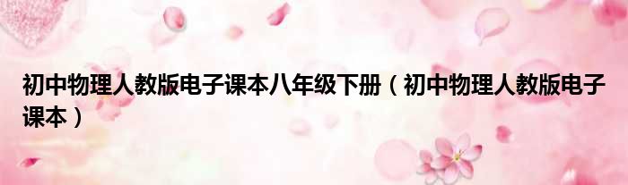 导读 大家好,今天小六子来为大家解答以下的问题,关于初中物理人教版电子课本八年级下册,初中物理人教版电子课本这个很多人还不知道,现在让我