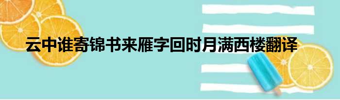 大家好,今天小六子来为大家解答以下的问题,关于云中谁寄锦书来雁字回时月满西楼翻译这个很多人还不知道,现在让我们一起来看看吧!