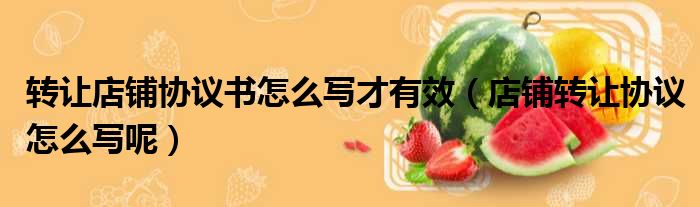 转让店铺协议书怎么写才有效(店铺转让协议怎么写呢)