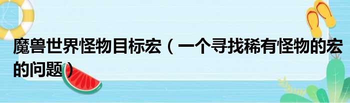 导读 大家好,今天小六子来为大家解答以下的问题,关于魔兽世界怪物目标宏,一个寻找稀有怪物的宏的问题这个很多人还不知道,现在让我们一起来看