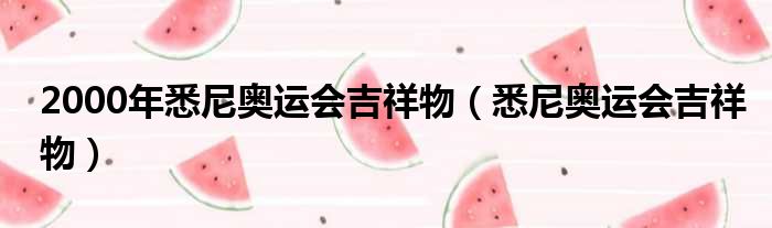 2000年悉尼奥运会吉祥物(悉尼奥运会吉祥物)