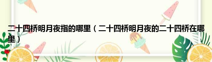 二十四桥明月夜指的哪里(二十四桥明月夜的二十四桥在哪里)