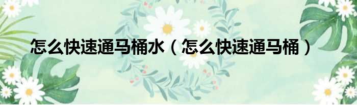 怎么快速通马桶水(怎么快速通马桶)