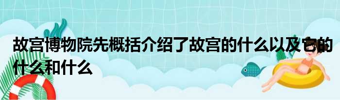 大家好,今天小六子来为大家解答以下的问题,关于故宫博物院先概括介绍了故宫的什么以及它的什么和什么这个很多人还不知道,现在让我们一起来看看吧!