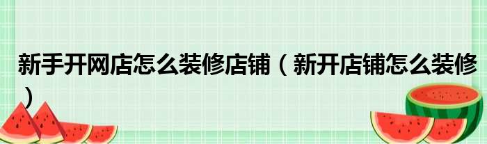 新手开网店怎么装修店铺(新开店铺怎么装修)