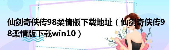 仙剑奇侠传98柔情版下载地址(仙剑奇侠传98柔情版下载win10)