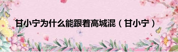 大家好,今天小六子来为大家解答以下的问题,关于甘小宁为什么能跟着高城混,甘小宁这个很多人还不知道,现在让我们一起来看看吧!