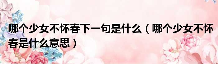 大家好,今天小六子来为大家解答以下的问题,关于哪个少女不怀春下一句是什么,哪个少女不怀春是什么意思这个很多人还不知道,现在让我们一起来看看吧!