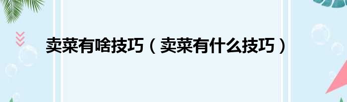 导读 大家好,今天小六子来为大家解答以下的问题,关于卖菜有啥技巧,卖菜有什么技巧这个很多人还不知道,现在让我们一起来看看吧!1、卖菜也是有
